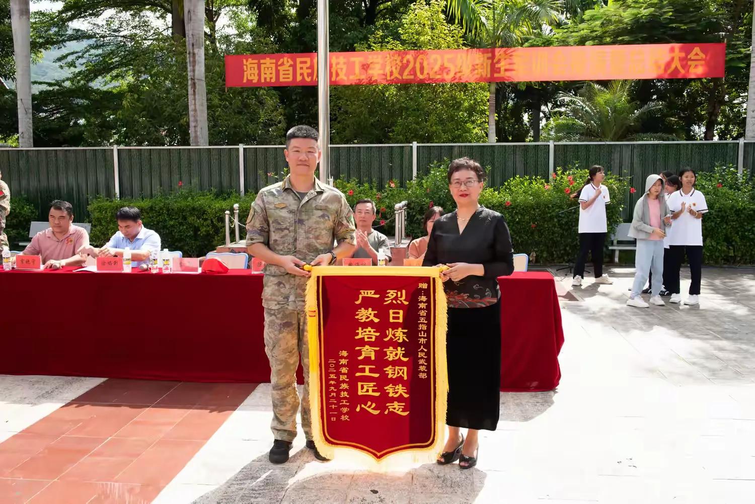 校领导在总结讲话中对新生在军训中的出色表现给予高度评价,表彰了优秀连队和训练标兵。