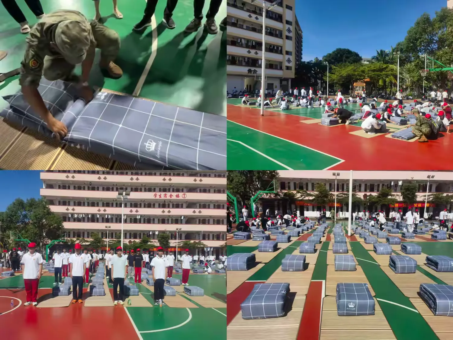 内务整理环节中,叠被子作为重点训练项目,由教官现场演示“豆腐块”标准叠法,引导学生从细节入手,养成严谨细致的作风。